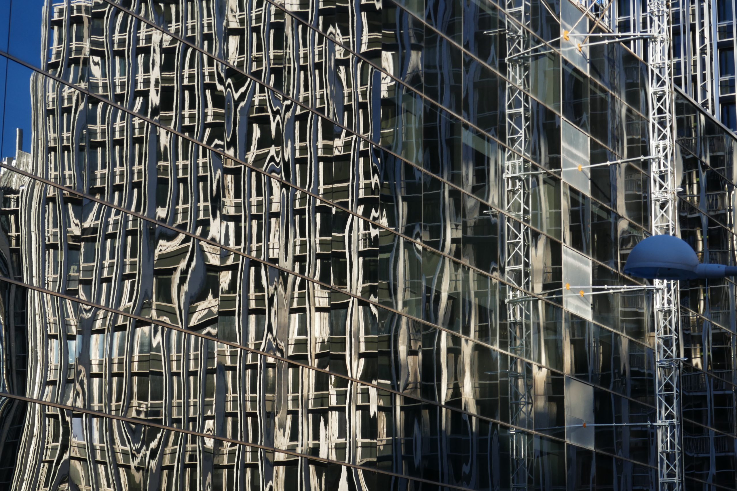 La ciudad también se compone de geometrías que respiran. En esta serie me acerco a las líneas, formas y volúmenes que dan carácter al entorno urbano. A veces son edificios enteros, otras, fragmentos: un ángulo, una curva, una repetición que se convierte en ritmo visual. Busco estructuras que me despiertan curiosidad, que parecen moverse o hablar desde su rigidez aparente. La arquitectura, más allá de su función, también cuenta historias. Solo hay que detenerse a mirarlas.